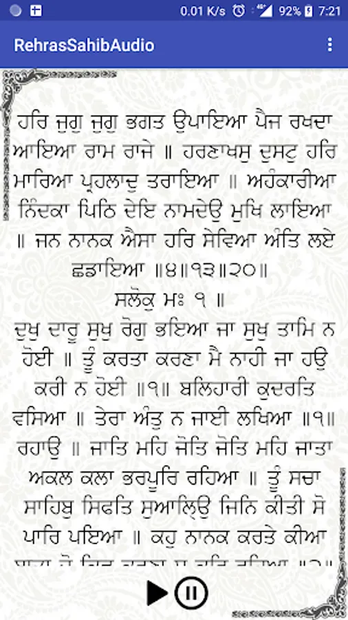 Rehras Sahib Path Audio App in Punjabi, Hindi, English (Gurmukhi) - Sikh Prayer