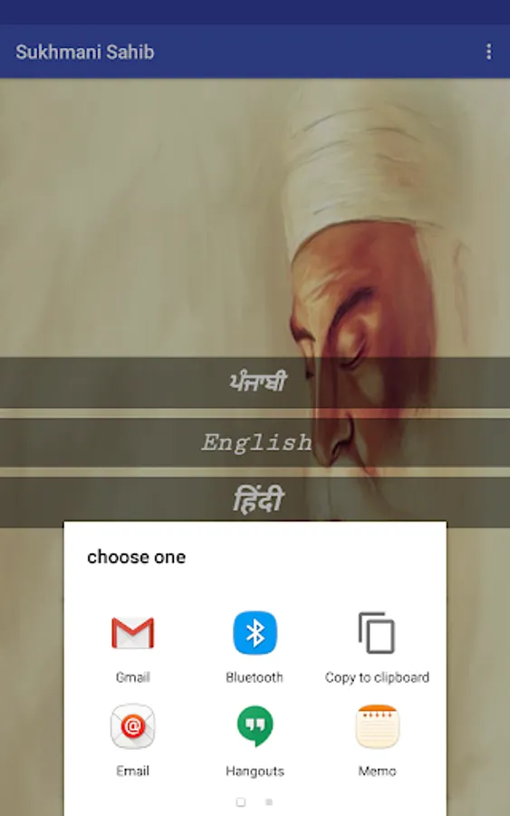 # Language preferences:- 'Sukhmani Sahib in Punjabi (Gurmukhi)', 'Sukhmani Sahib in Hindi' and 'Sukhmani Sahib in English'