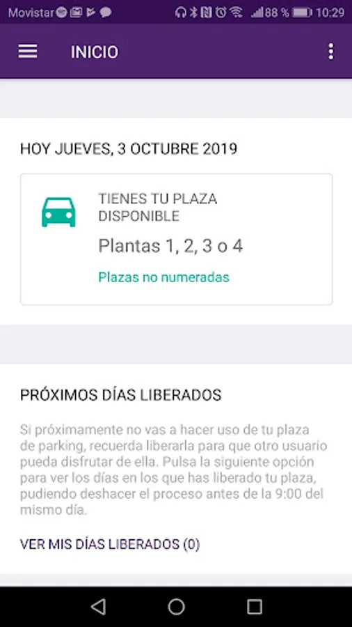 To make use of parking spaces the company has available for its employees in the office building in Madrid you need to use your management system plazas. With this application facilitates management.