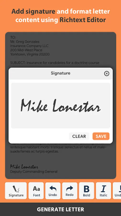 • Add Signature in letter (PRO)