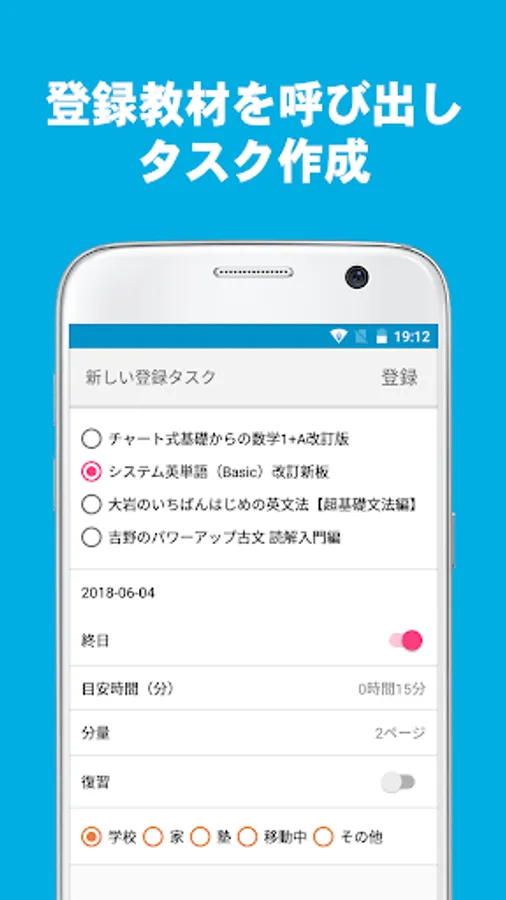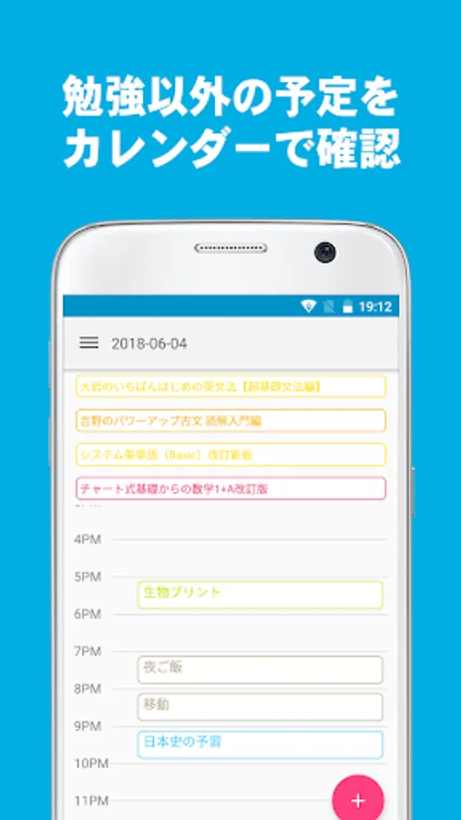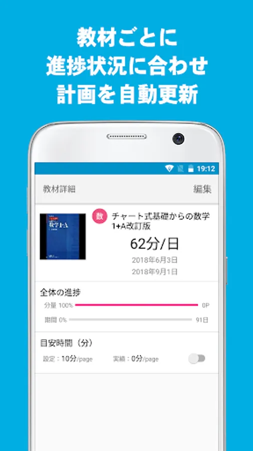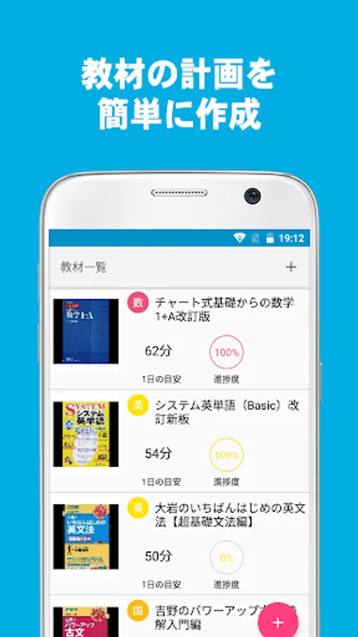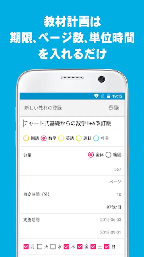いつも使っている参考書のページ数や1ページあたりの時間を登録すると簡単に1日の勉強時間を計算し、自動でスケジュールを作成。進捗に応じて、1日の勉強時間を最適化。