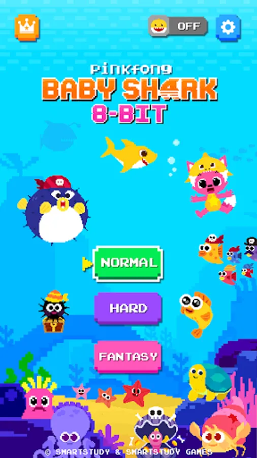 Baby Shark 8BIT is an arcade game where Baby Shark find various underwater friends while avoiding obstacles in the sea. Meet various friends in the sea, and fill your own sea with friends!