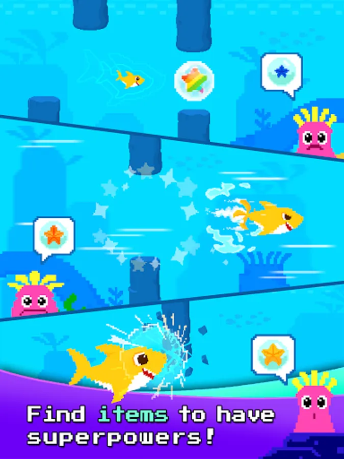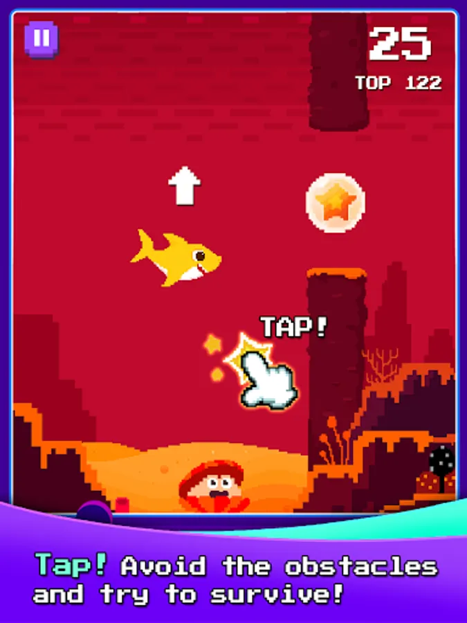 Tap the screen to help Baby Shark swim. Avoid the obstacles and get stars!