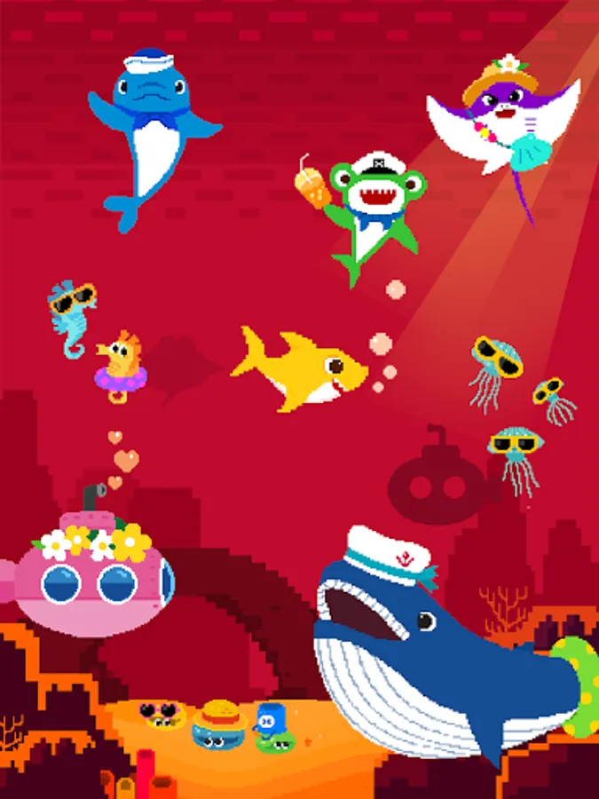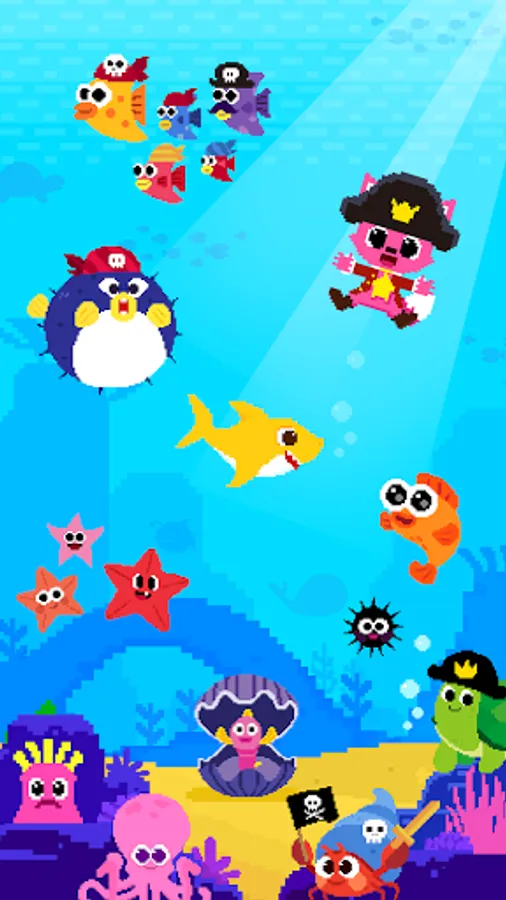 Find a variety of underwater friends, such as sea turtles and shellfish, tropical fish and sea urchins, and make friends with Baby Shark.