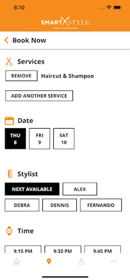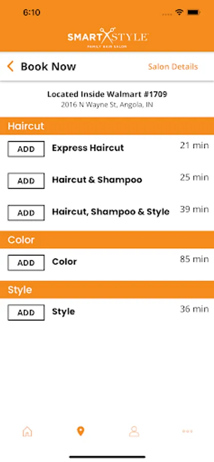 • Select “My Salon” so your favorite location shows up first (plus, easily change your preferred location)