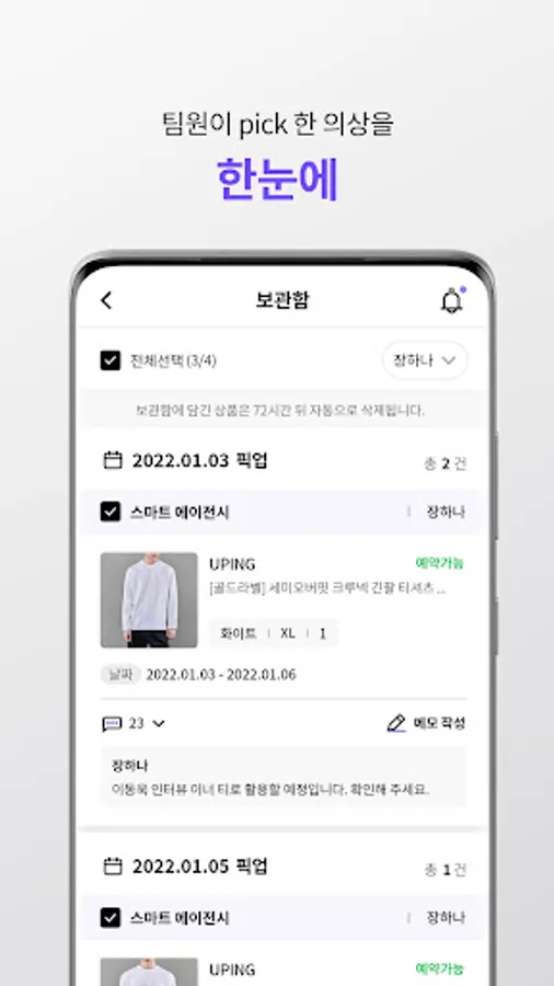 By using SMART STYLIST, you can check pickup and return schedules, team clothes, and unpaid clothes information at a glance.
