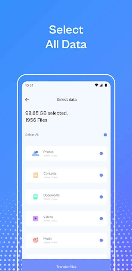 The application is amazing as it uses the latest tech to help transfer file quick and easy gives you a free hand in sharing data. This file sharing application transfers all kinds of data. Clone your whole phone with data transferring app.