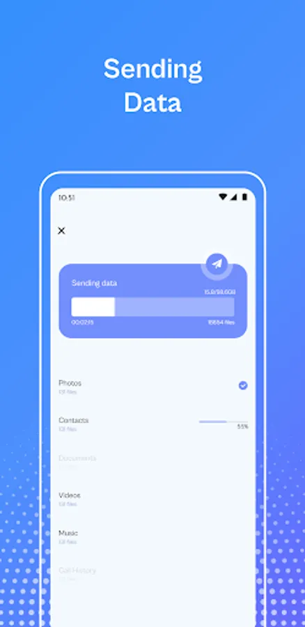 In addition to highspeed file transfer, also you can still use other sharing services like Bluetooth, Wi-Fi Direct, email and others. All types of files can be shared together in one request. You can choose apps, images, videos, music and other files types to transfer.
