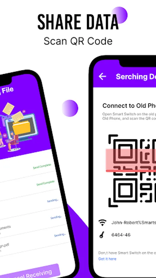 Smart switch, Transfer my data is file transfer & smart data app that lets users move data of any format & send anywhere.The smart switch mobile app & smart transfer tool can transfer data or quick share with ultimate security. Smart switch mobile lets users copy my data.Scan the QR code with your Android device & connection will be established between two Android devices.Then you can share data with another device using send anywhere content transfer app.