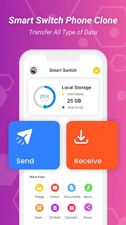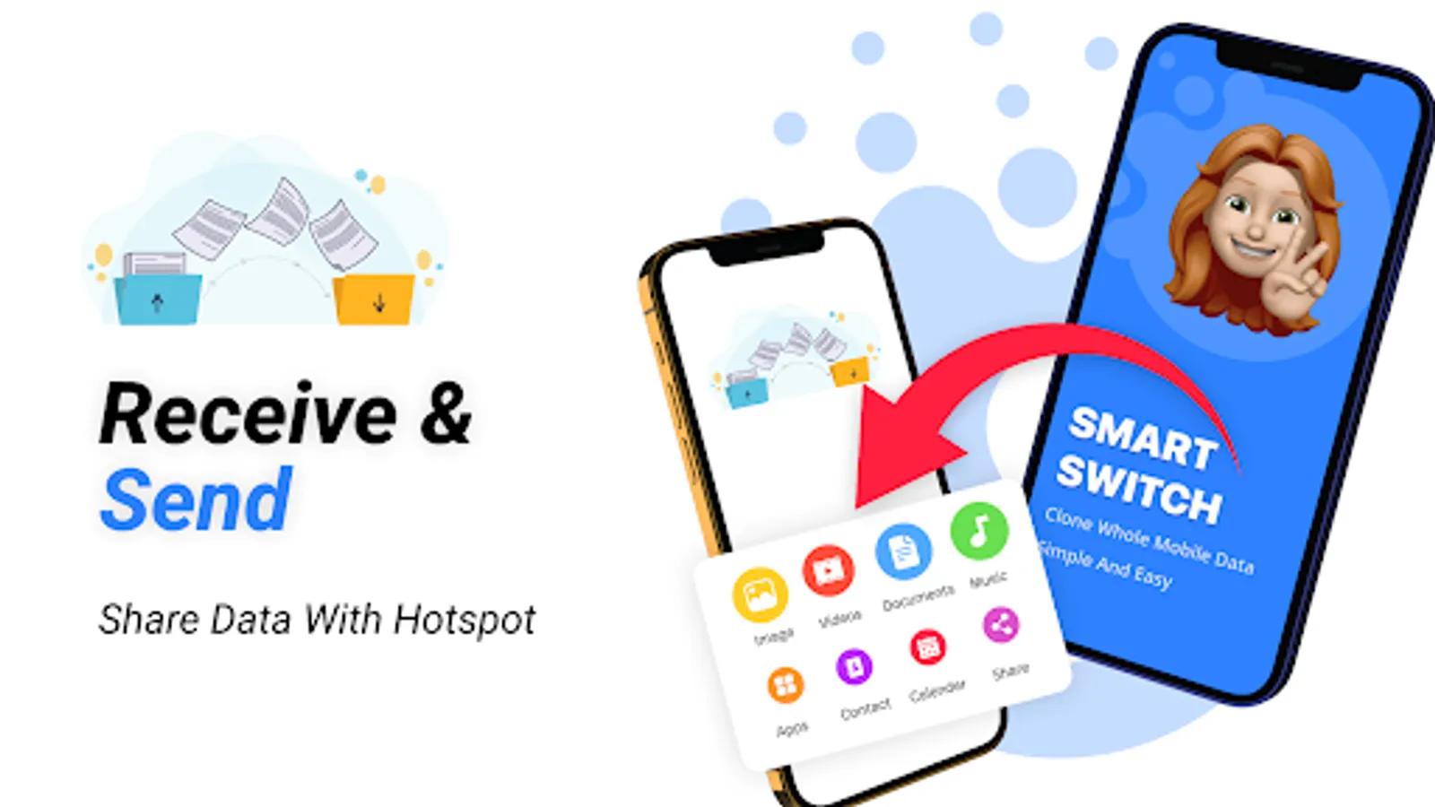 Smart Switch Transfer my data app allows you to transfer photos, videos, contacts, and data with one tap! Switch data with copy my data app from one phone to another and make data transfer easy. Move all types of mobile data with WIfI & hotspot.