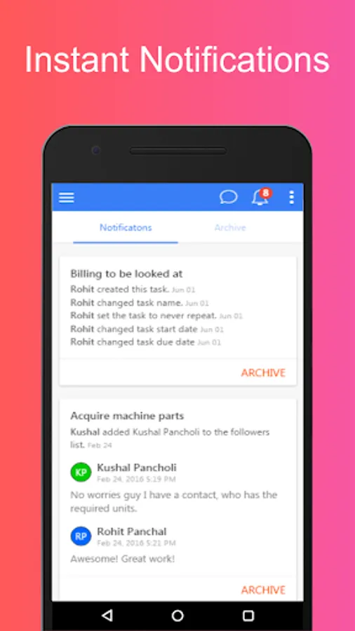 - Get notifications about critical work and get notified when someone in your team needs your help.