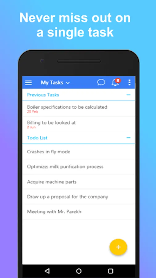 SmartTask helps you better manage your work. Almost 40% of our time is wasted behind things like meetings, phone calls and emails, just so the other person is made aware of a particular status. With SmartTask every important information is available with a single click.