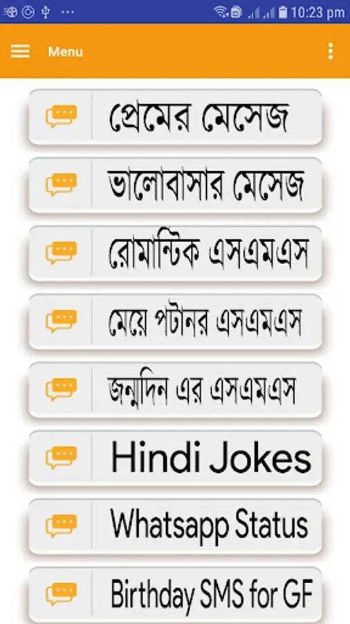 This is the app here get Bangla Love SMS 2022 , get Latest Meye Potanor SMS & Love SMS 2022 new app . Misti premer chondo , Bangla Love SMS for Girl friend's ,romantic shayari.
