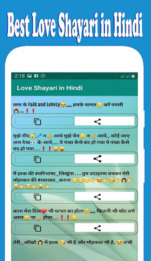 This is one of the best Love Shayari In Hindi SMS collection. of latest Love SMS hindi, pyar mohaabat , Romantic SMS app which are free and no internet connection needed . Love is one of the most important part of human life for share there feelings to someone. This is the app for share love shayari and SMS in Hindi 2019. Here you get Ultimate FREE Offline Love SMS , Friendship SMS, Funny SMS, Attitude sms,collection of Shayari across various categories.