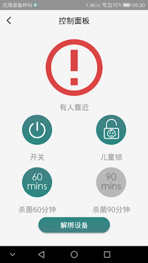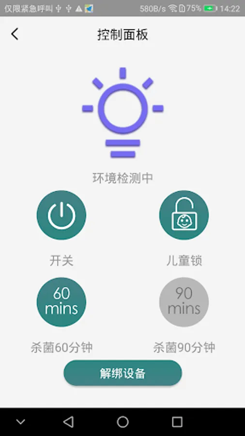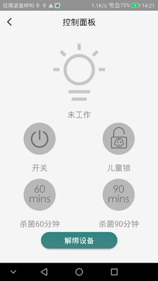 An APP that uses Wifi technology to pair with an ultraviolet germicidal lamp. After the device is successfully connected to the APP, you can remotely control the device on the APP main interface. With on/off sterilization function, unlock child lock function, select sterilization 60 minutes/90 minutes function.
