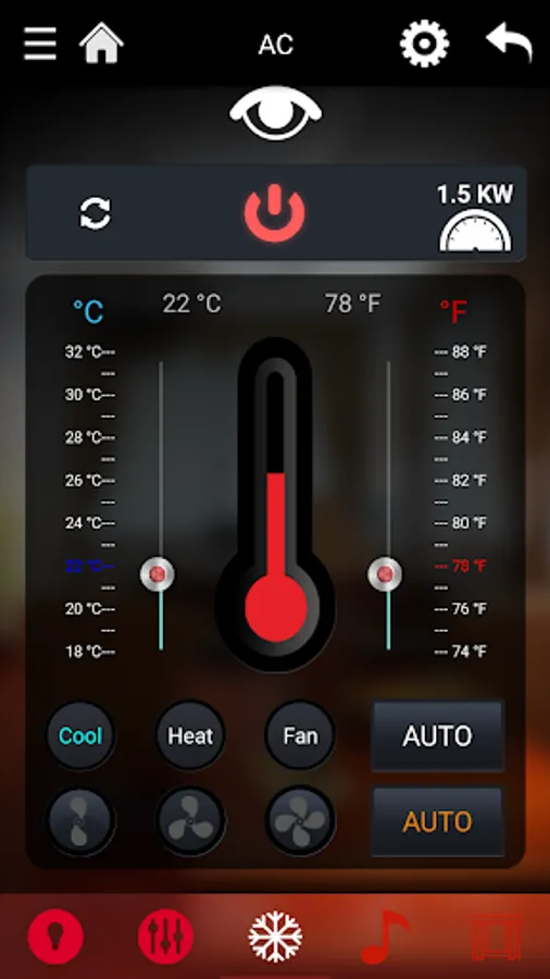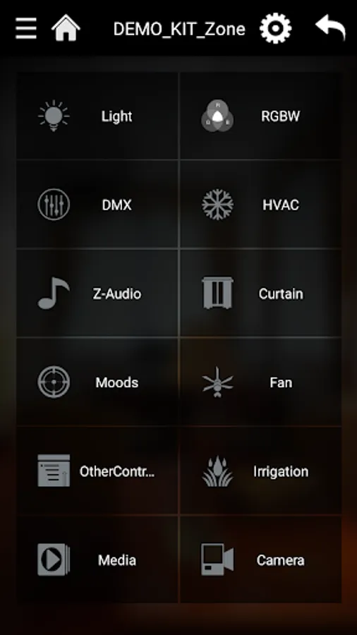 This application Enables the complete control of Lighting, Dimming, TV, DVD, Radio, Audio In etc.
