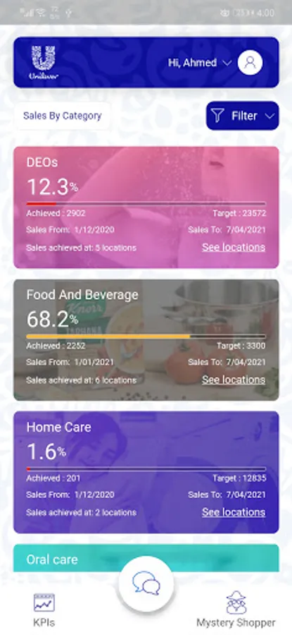 The management will see agents on maps and can access every product status (sales , target ) current month , can also access list of agents