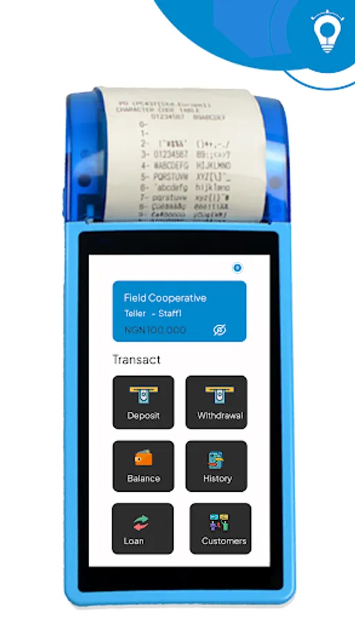SmartTeller Cooperative Banking Terminal, print receipt on every transaction.