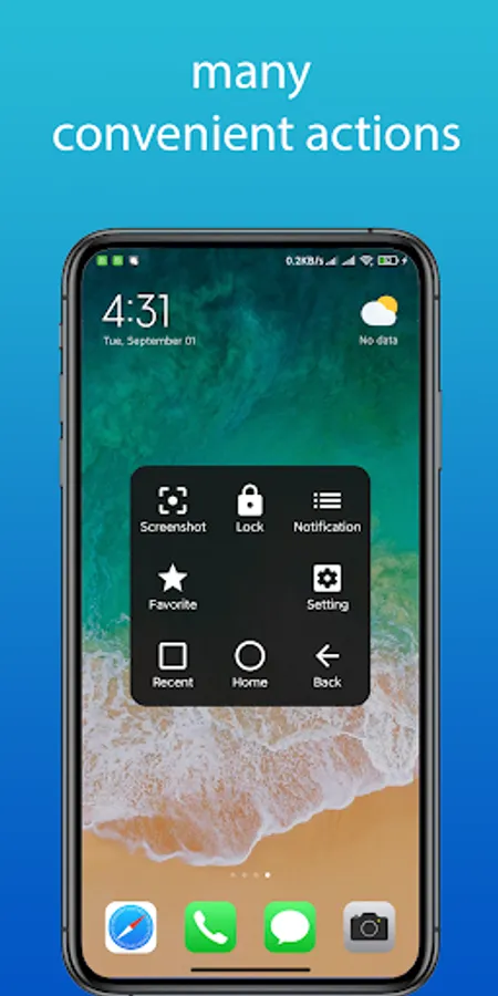 To use some action: going back, going home, opening recent, power dialog, open notifications shade, please allow Accessibility services. The service is only used to allow this app to to perform above features. Please grant this permission to use these actions: Go to Settings > Accessibility > Services and turn on AssistiveTouch.