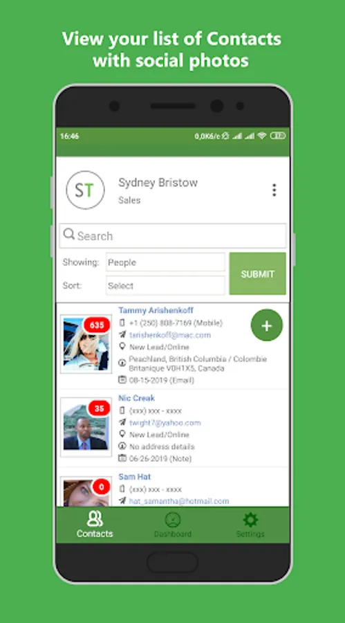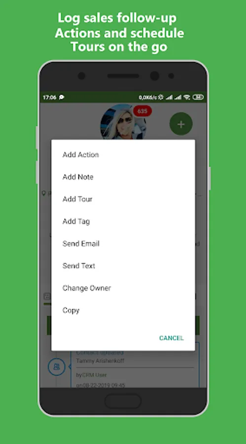 You can access and add Contacts, track follow-up Actions, send emails, log details to Notes, and view key profile preferences on the mobile app.