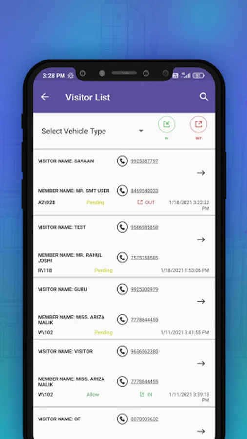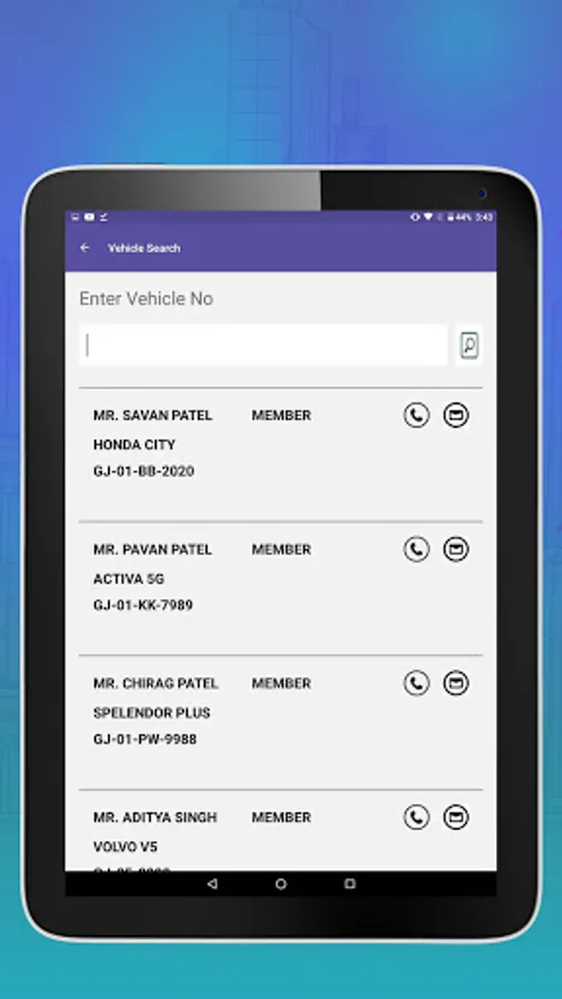 Security staff can track any vehicle owner of the society through the app by entering the vehicle number.