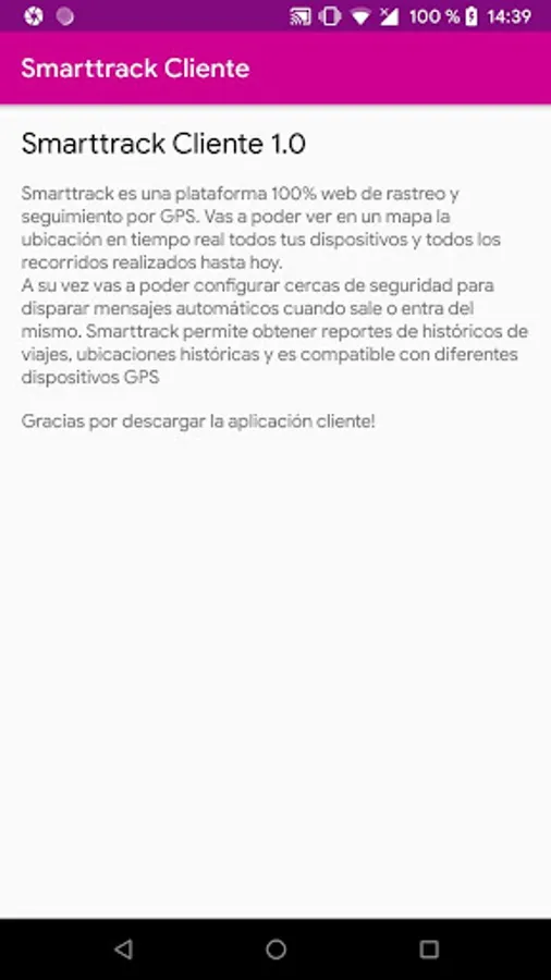 Smarttrack Client is a mobile application that allows you to use your SmartPhone as if it were a GPS and thus have real-time control of the location of the device.