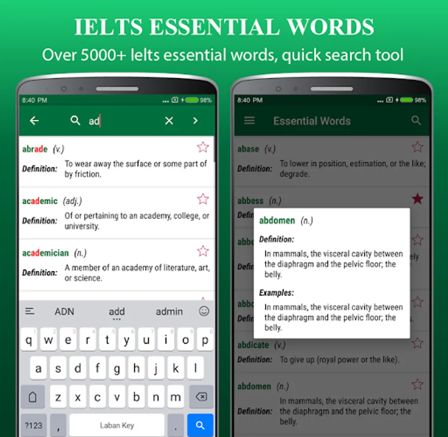 IELTS Essential Vocabulary is the best way to learn essential words and tests to prepare for IELTS exam.