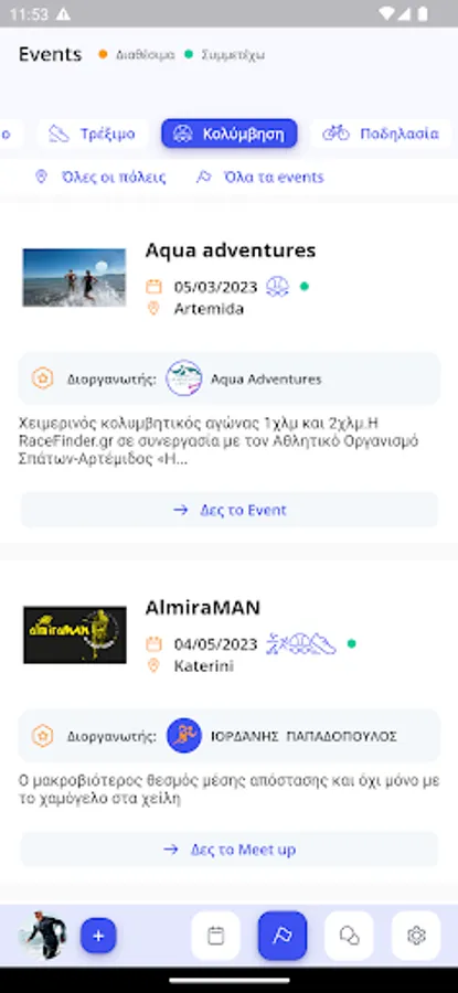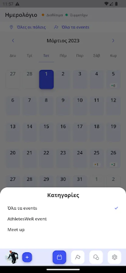 At AthletesWeR you have the calendar with the sports you are interested in, and when an event is added to the calendar, you get a notification so you don't have to search and never miss an event! In addition, you get a notification when you participate in an event when the results are uploaded.