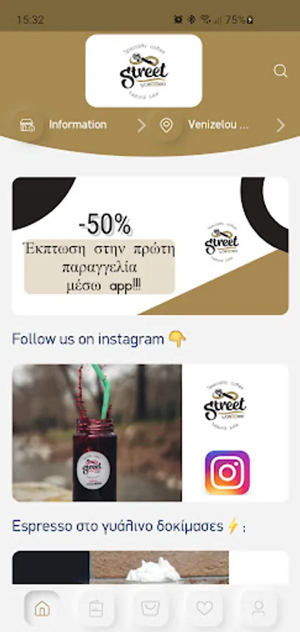 Download the app and try it all! If you live in Serres, order coffee and juices from the Street by Cammeo app and accompany them with a variety of snacks & sandwiches.
