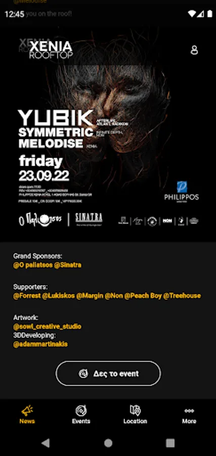 The unique Rooftop Electronic Music Event in the city of Serres from 2017 gets an app that is a smart Event Guide for those who want to participate and dance to its rhythms. Members have immediate information on the date of the events, tickets, discounts, gifts and contests as well as access to the bios of the participating DJs. Download and join now!