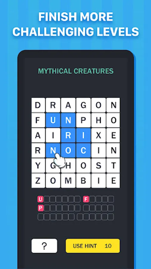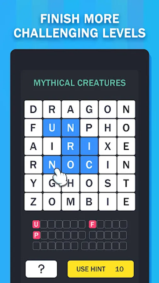 - SWIPE your finger up, down, left, right and diagonally among mixed letters.