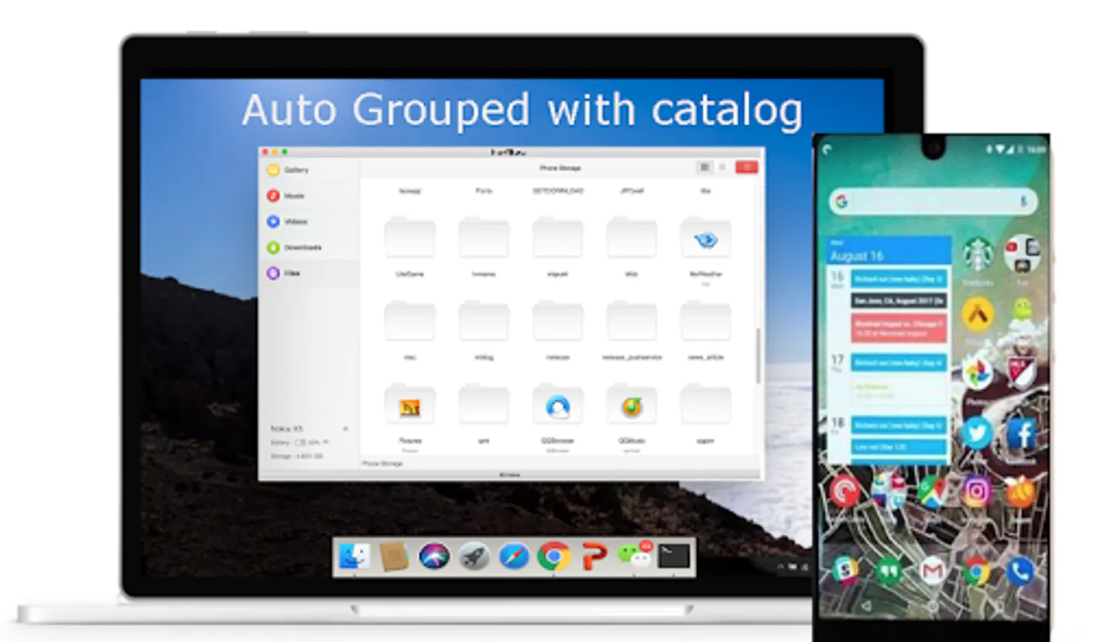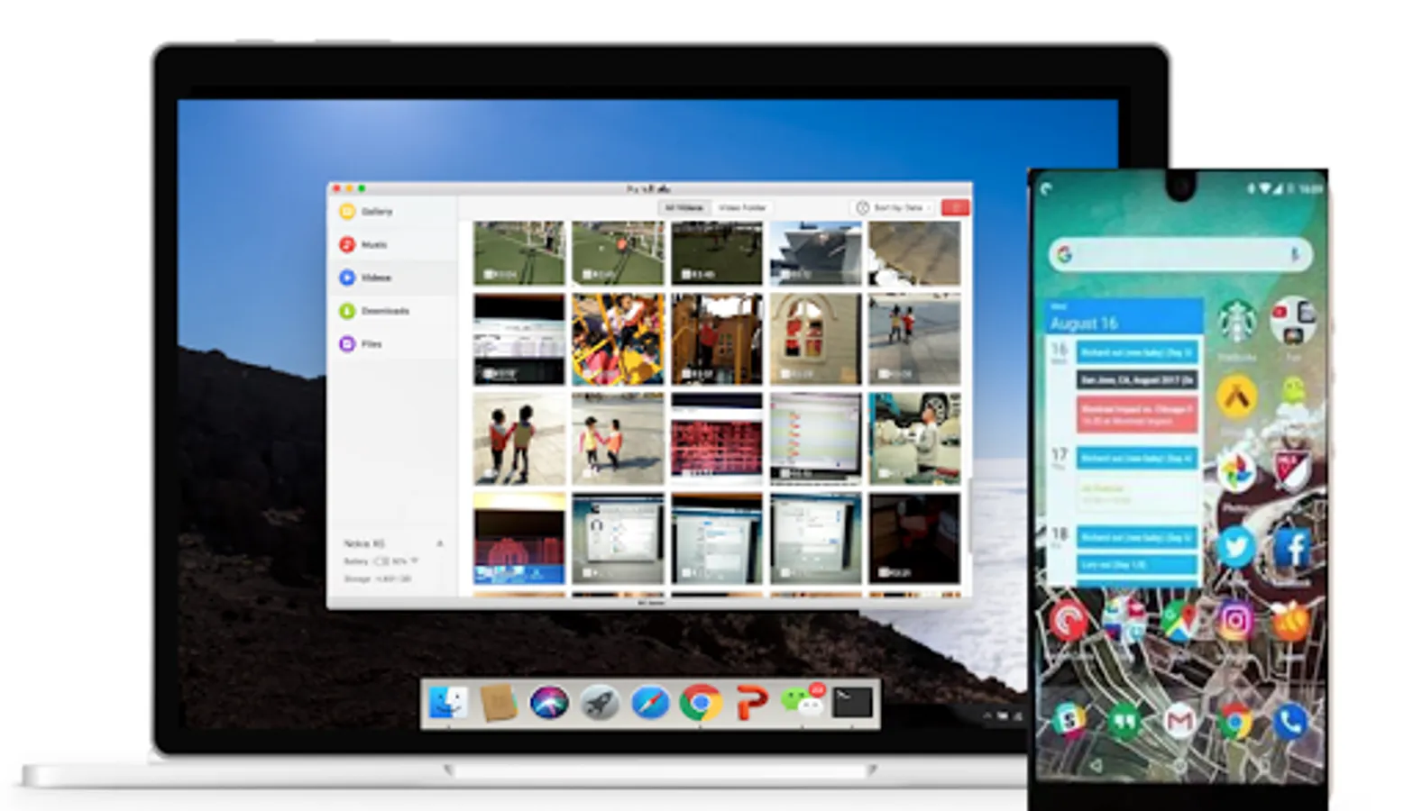 Manage photos, ringtones and videos, upload, install and export apks from phone.