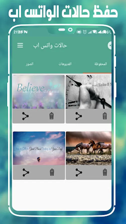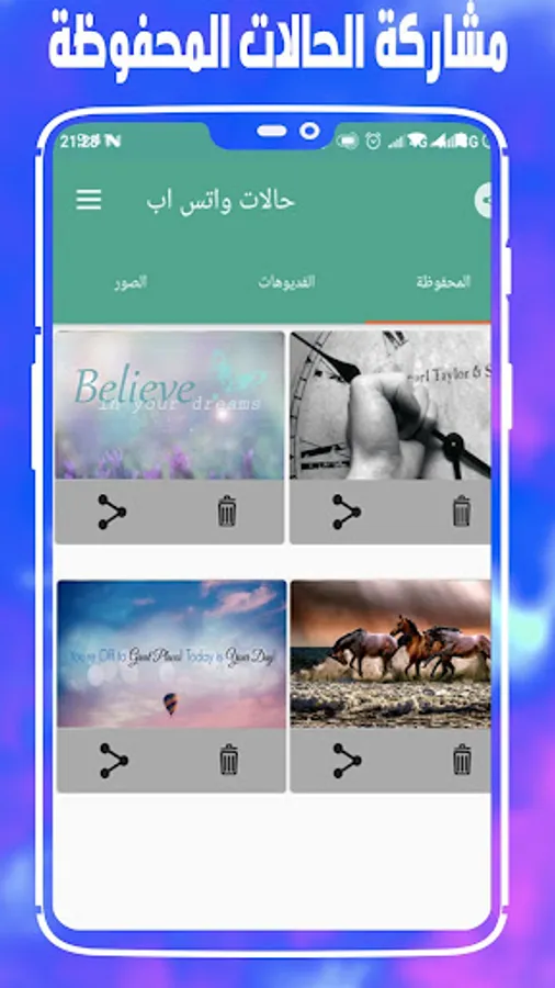 Download WhatsApp Status, Save WhatsApp Cases, Pictures and Videos, an Arabic application that offers a wonderful collection of the most beautiful and newest cases, Tobikat, and Sad Love Broadcast.