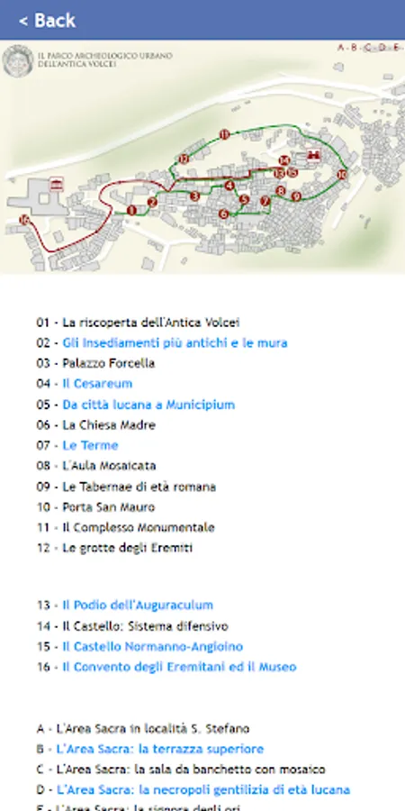 The App wants to be a support tool in the visit to the Archaeological Park The App provides: