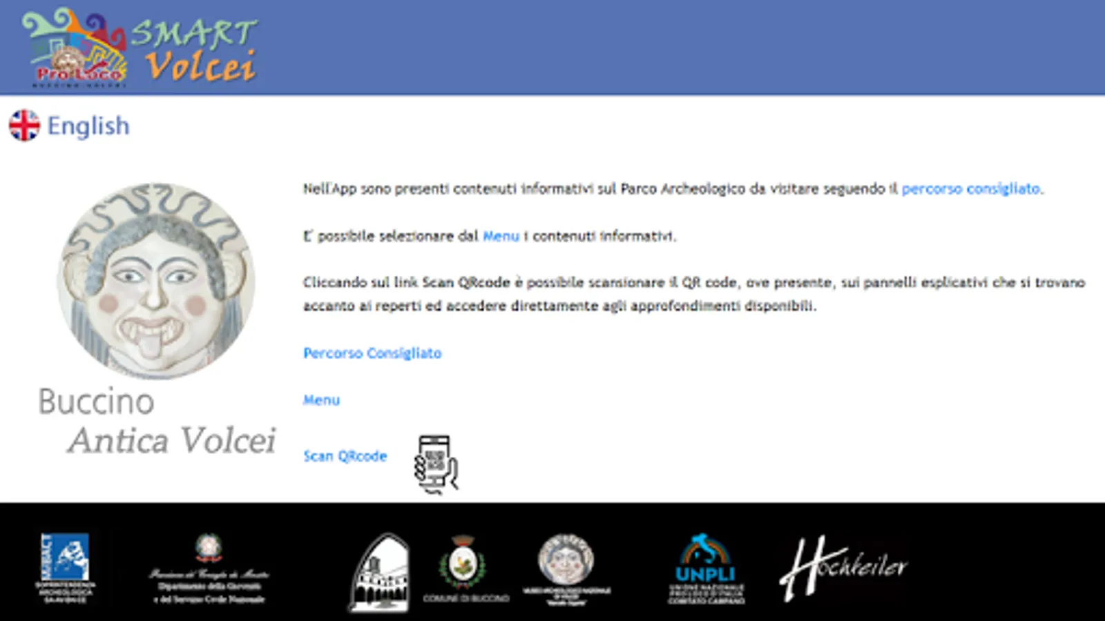 - additional informations directly accessible on your mobile phone by the selecting Menu or, contextually, by scanning the QR code, where present, on the panels next to the archeological finds.
