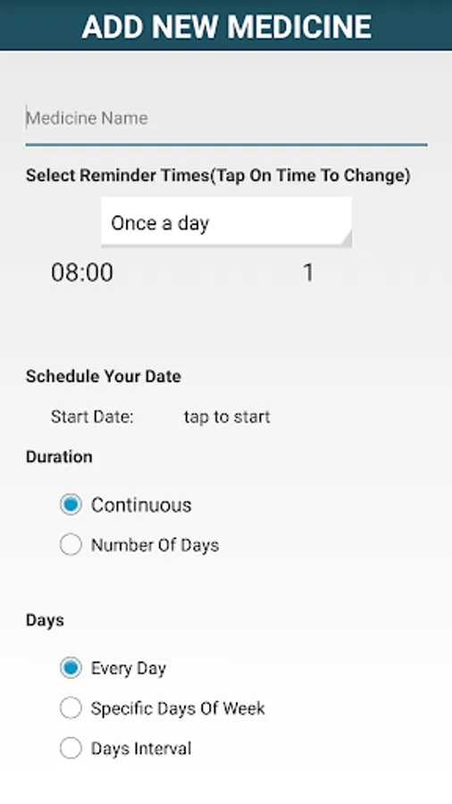 - Add medicine detail like when to start taking medicine, daily schedule, dosage, with food and without food, doctor, medicine shapes