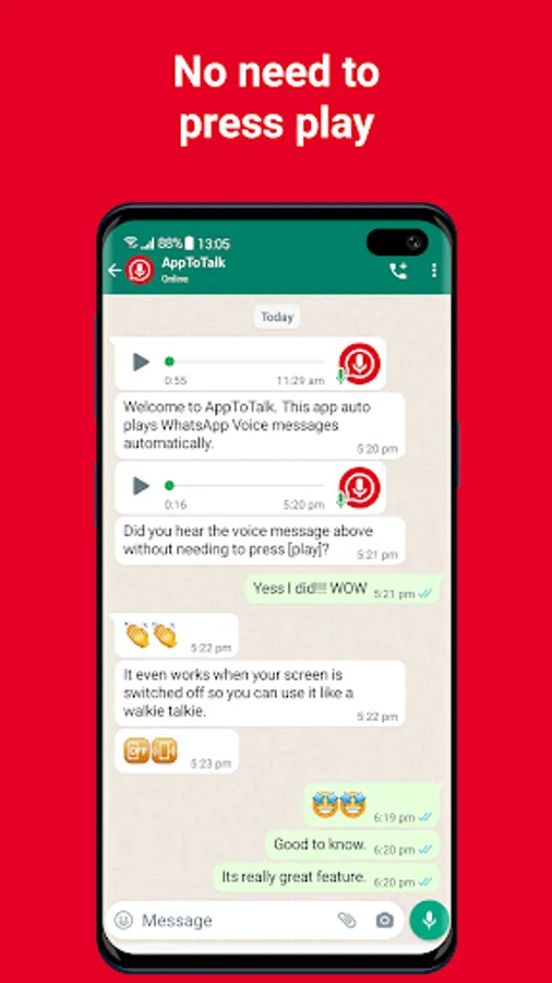 ● Automatically play all your WhatsApp voice messages