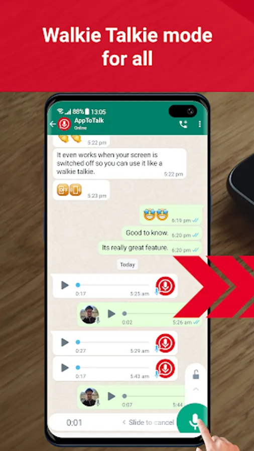 Bring the Walkie Talkie feature to your WhatsApp conversations and play your incoming voice messages automatically.