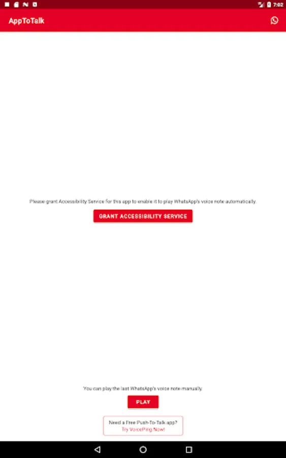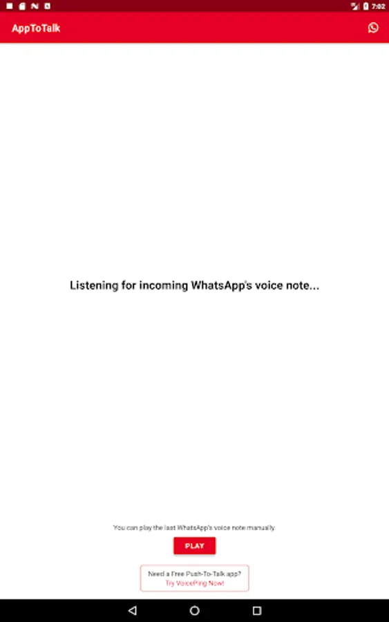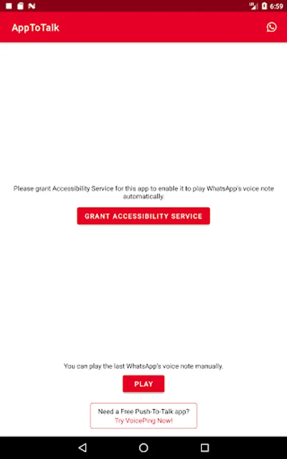 AppToTalk, the free communication for Android, comes with a clean and neat design and the interface is so user-friendly because there is nothing you need to do. As soon as you grant the required permission, AppToTalk will play new voice notes automatically.