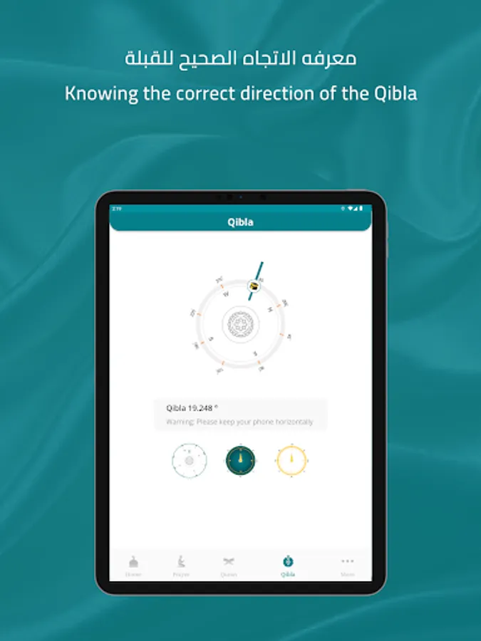 - اتجاه القبله: يظهر لك دائمًا الاتجاه الدقيق لمكة المكرمة
