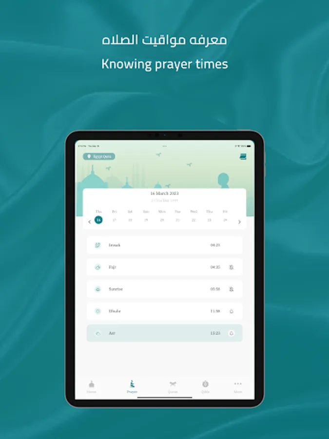 - مواقيت الصلاة: أوقات الصلاة الدقيقة لموقعك الحالي.