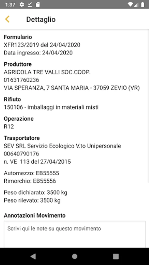 APP for the management of environmental non-compliance controls during the acceptance phase of the FIR entering the treatment / disposal plants