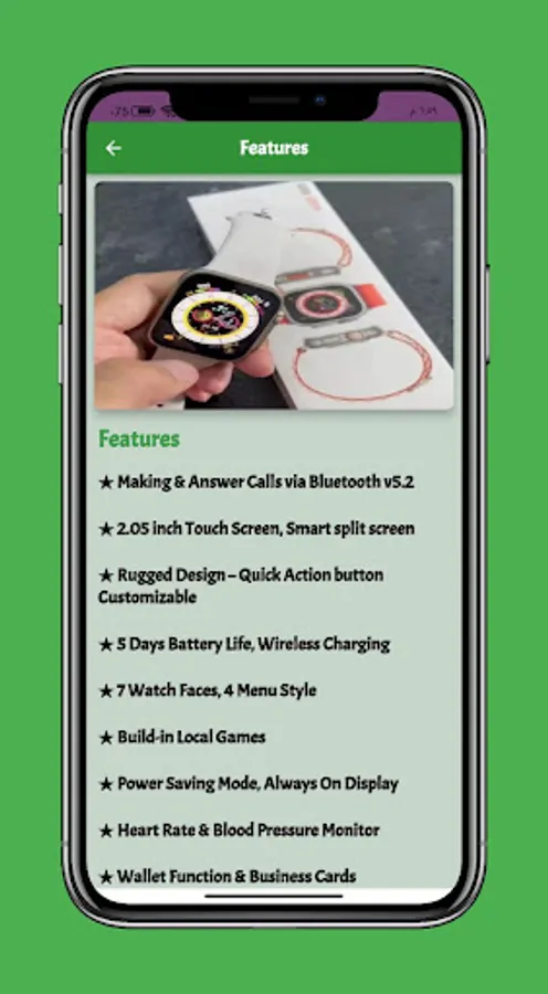 Contents of smart watch GS8 ultra app :-