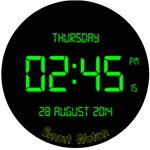 A smart watch face that displays the time, date and current day of the week. All date and time formats are supported.