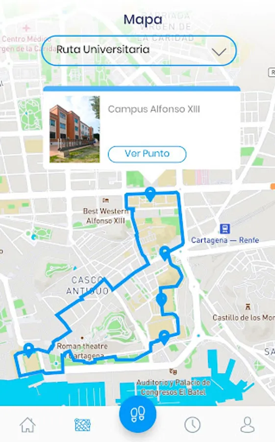 The app supposes the development at local level, within the city of Cartagena of these initiatives. Designed to operate with it in a simple and intuitive way, it will serve as a guide to carry out a healthy physical activity in the surroundings of the facilities of the Polytechnic University of Cartagena (UPCT), it will allow to keep a control of the carried out activity and to share the information with others. It will also be possible to plan routes with a different purpose, oriented to tourism, thus knowing the history of UPCT buildings.