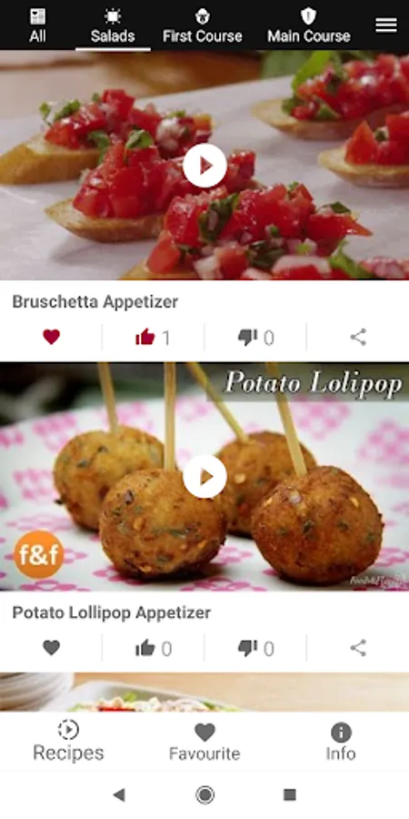 New video recipes every day; ‘your favourite Recipes’ page where you save your best recipes, and the possibility to vote your best choice.