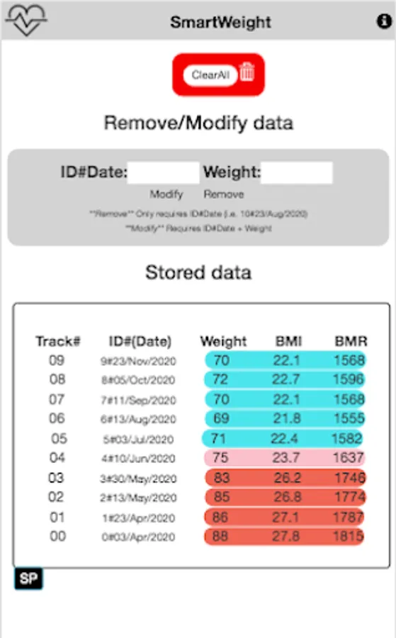 SmartWeight displays and tracks your weight as time moves on and compare it to your Ideal and Healthiest Weight. It compares each average monthly value to the previous month for more effective tracking.