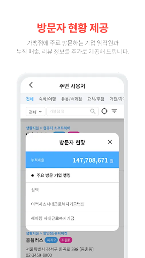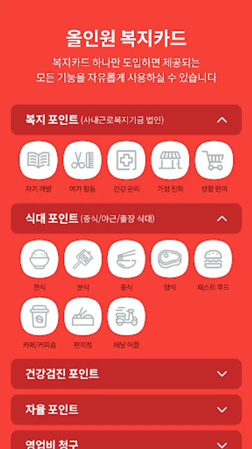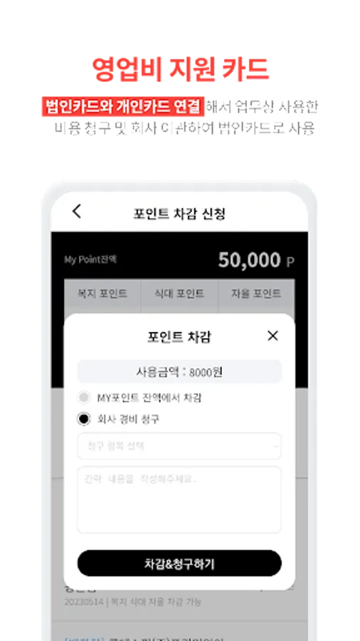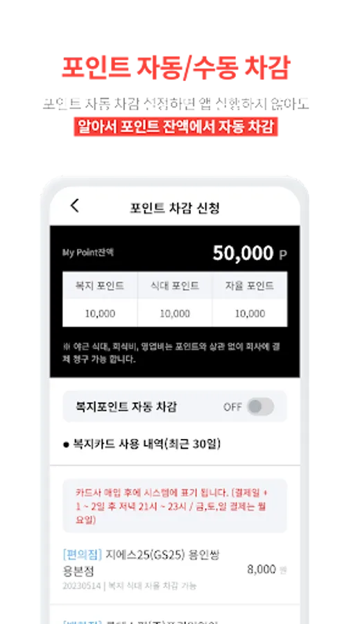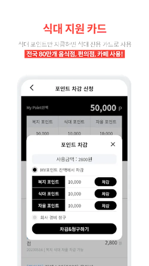 Welfare points assigned by the company, meal points, autonomous points allocation history, usage history, cancellation redeposit history can be checked in real time on the app