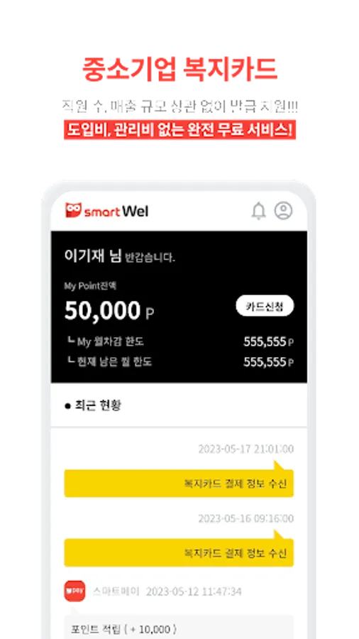 Smartwell Co., Ltd. is a mobile welfare card deduction claim management service for employees of member companies using welfare cards and meal cards.