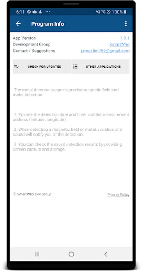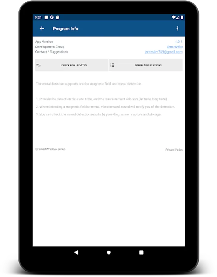 Magnetic Field Meter supports magnetic field detection, detected location information, capture, and more.